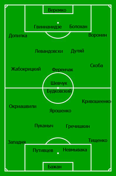 Валерий Яремченко, несмотря на серию неудач, также не особо настроен тасовать состав. Дисквалифицированного Чайковского по сравнению с прошлым матчем в центре поля заменит другой молодой игрок Гречишкин. Возможен вход на левом фланге Картушова вместо Окриашвили, все-таки грузин в последние недели пережил травму и против той же Волыни отыграть больше часа не сумел. А может там сыграет и юный Юрченко, полностью восстановившийся после травмы. Кравченко отыграл вчера тайм за молодежную команду и в лучшем случае выйдет на замену.