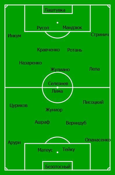 Также после двух матчей отсутствия возвращается в стартовый состав Ротань, и тут у Хуанде Рамоса начинаются трудности, ведь и Назаренко, и Кравченко, и Жулиано довольно неплохо действовали, но все-таки Руслан настолько важный игрок, что ему обязательно найдется место в стартовом составе. Из-за дисквалификации не сыграет Чеберячко, в его отсутствие в центре обороны ожидается связка Русол - Мандзюк, а начинавший последний матч со скамейки Инкум снова сыграет в старте. Ближайшим помощником Селезнева может снова быть Шахов, по крайней мере, он забил в прошлом туре и довольно неплохо смотрелся. Хотя может именно и его заменит Ротань в старте.