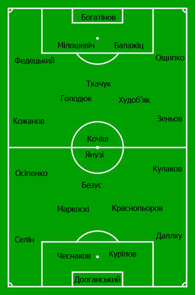 ат говорив, що команді не вистачає мотивації, зважаючи на це, можливо, Кононов довіриться резервістам та молодим гравцям. Тобто важко вгадати, який саме варіант обере сьогодні головний тренер зелено-білих. Це може бути як повноцінна основа, так і всі гравці, що мають не досить ігрової практики.