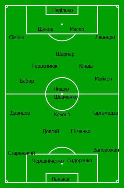 Володимир Шаран має повне право орієнтуватись на той склад, що досить непогано відіграв у Харкові минулого туру. Можливо тільки в лінії атаки будуть проведені зміни, Давидов зіграє на лівому фланзі замість Салхі, а Шевченко з перших хвилин замінить Кабанова.