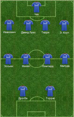 Третий вариант для Анчелотти – традиционные 4-4-2. В этом случае, линия обороны ничем не будет отличаться от предыдущих схем, Малуда и Эссьен займут фланги полузащиты, Лэмпард и Микел – центр. А пара нападения, естественно, будет состоять из Дидье Дрогба и Фернандо Торреса. Ивуарийский форвард Челси не раз упоминал о том, что игра с Андреем Шевченко в качестве второго нападающего облегчала его работу, побуждая действовать еще более эффективно. Именно поэтому такая расстановка также имеет право на существование. А вот Саломону Калу, судя по всему, придется еще долго ждать, прежде чем он станет твердым игроком основы Челси.