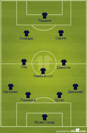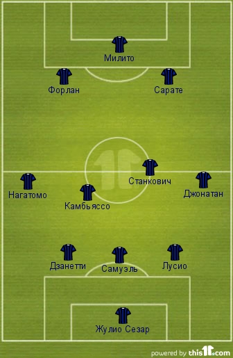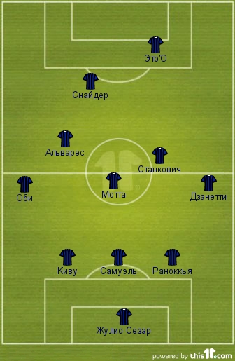 муэль, Киву, Дзанетти, Мотта, Станкович (Паццини, 74), Альварес (Фараони, 64), Оби (Кастеньос, 82), Снайдер, Это'О