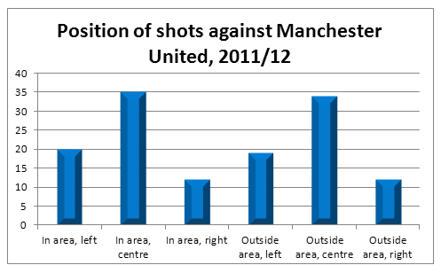 Важно понять, откуда наносились удары по воротам МЮ. 51% от общего количества шел из пределов штрафной, чуть менее 49% - извне. При этом второй показатель явно превышает норму, среднестатистическая команда АПЛ обычно позволяет себе пропускать около 43,5% дальних ударов.