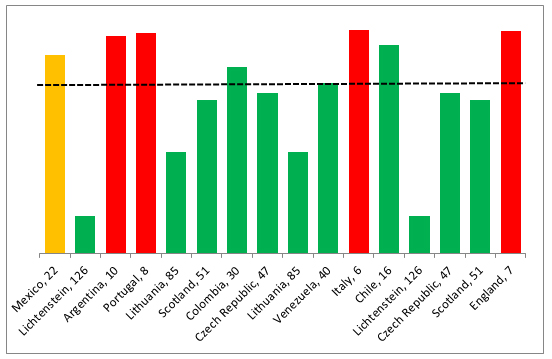 - цифра рядом со сборной - текущее место в таблице рангов ФИФА