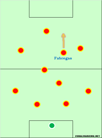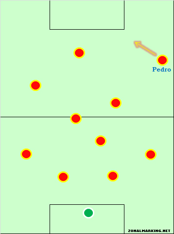 Его появление после перерыва в матче с англичанами, казалось, имеет смысл. Пока не стало понятно, что он просто должен был заменить Силву в роли той самой фальшивой девятки. Показалось, что Дель Боске допустил ошибку - вместо того, чтобы двигаться вперед, Сеск изначально располагался на острие и отходил назад.