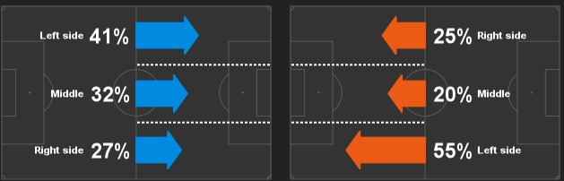 Еще одним фактором, обозначившим некое преимущество Сити в средине, стало создание свободных зон и, как результат, их использование проникающими передачами. Двукратное преимущество в обостряющих пасах было обеспечено усилиями Агуэро, Насри и Силвы, которые таким образом трижды отличились, а передача испанца на 56-й минуте оказалась голевой.