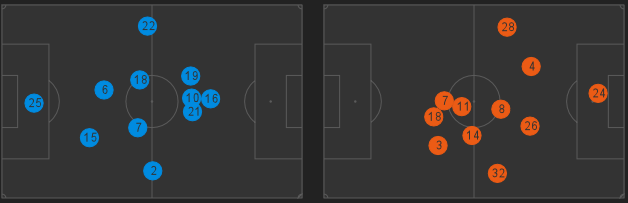 Оглядываясь на весь поединок, непросто определить чья линия полузащиты действовала полезнее. Что касается статистических показателей, здесь практически полный паритет, но в плане взаимодействия в концовке поединка предпочтительнее выглядел Сити. Способствовало этому как минимум два фактора: усталость (Шпоры набегали заметно больше оппонента) и слабое вхождение в матч Ливермора, что стало для хозяев настоящим подарком. С уходом ван дер Ваарта Тоттенхэм потерял в креативных действиях, что конечно ожидалось и жертвовалось как раз в пользу надежности обороны. Однако зацементировать средину Ливермору не удалось, в результате чего Модрич и Паркер лишились поддержки и уже не способны были на равных противостоять Силве и Ко.