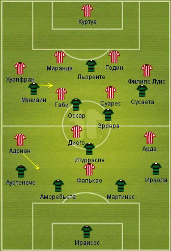 Да, Ираола и перешедший на позицию левого фулбека де Маркос стали гораздо активнее вести себя на чужой половине поля, однако, играя с Атлетиком, забывать об атаке настолько рано категорически запрещено. Нет, Фалькао и Диего продолжали напрягать оборону команды из Бильбао, но их усилий зачастую было недостаточно.