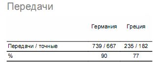 о смело добавлять и те самые достоинства, присущие испанцам. По владению мячом они превзошли греков почти в три раза (71,1% против 26,9%) и выполнили 739 передачи только с десятипроцентным браком! 97 атак - показатель не менее удивляющий. И это в четвертьфинале чемпионата Европы, а не квалификационный этап...