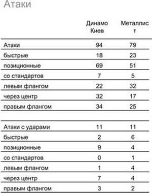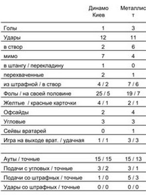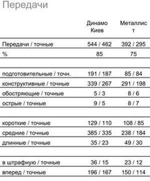 Игроки Металлиста пасовали меньше, но острее. Харьковчане отдали семь точных потенциально голевых передач против пяти у киевлян, а также шесть обостряющих (передач, которые могут привести к созданию голевой ситуации) против трех у динамовцев. В переводе на общепонятный язык - гости создавали больше остроты при меньшем владении мяча и количестве передач. То есть играли проще и эффективнее. А это признак того, что у команды есть поставленная игра, а не просто собраны исполнители высокого уровня для данного турнира.