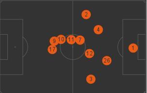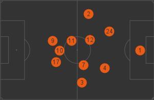 Похожая картина была и в матче с Тоттенхэмом. Среднестатистическое положение трех атакующих полузащитников Челси вновь сконцентрировано ближе к центральной зоне.