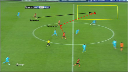 И вот тут, на наш взгляд, соперников, которые противостоят команде Луческу, подстерегает серьезная опасность. Дело в том, что такие игроки, как Виллиан, Мхитарян и Тейшера, обладают хорошей скоростью. Причем как стартовой, так и дистанционной. Суть опасности для соперников Шахтера заключается в том, что, чем больше они прижимают игроков Шахтера к своим воротам, тем больше они оставляют открытого пространства в центре и на своей половине поля, которое скоростные игроки донецкого клуба могут использовать после перехвата мяча. Причем это пространство игроки Шахтера иногда создают искусственно, перемещая начальную линию прессинга чуть ближе к своим воротам.