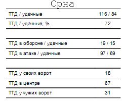 Неудивительно, что Срна в итоге выполнил шокирующее как для крайнего защитника количество ТТД - 116! Это второй показатель среди двух команд (первый - Фернандиньо - ушел недалеко, и на его счету 122 тактико-технических действия). Впереди он делал практически все, что хотел - на его счету не только одиннадцать точных передач в чужую штрафную, но две организованные результативные атаки. Бертранд может смело брать уроки мастер-класса.