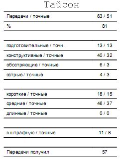 Русенборг остановить взрывного бразильца не сумел. Даже помимо застрявших в памяти гола-красавца и ассиста на того же Шавьера, Тайсон просто рвал и метал. Играл в большей мере даже не на себя, а на партнеров - отсюда и шесть обостряющих передач (три точные), и четыре острые (три точные). Что и говорить, если он даже больше половины единоборств выиграл - семь из тринадцати!