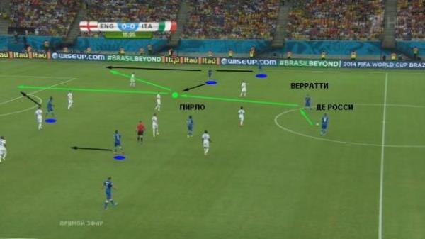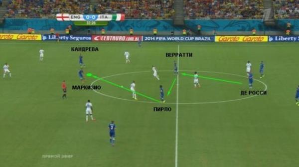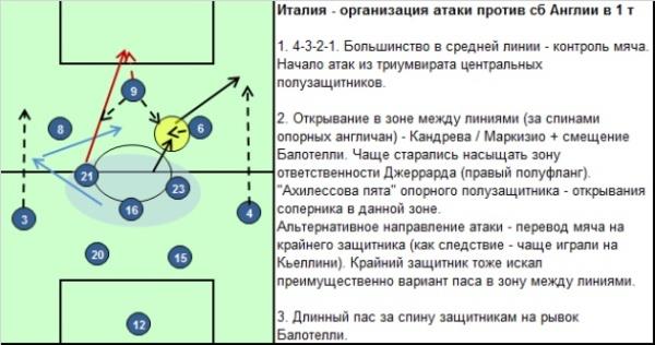 Как, например, во второй голевой атаке итальянцев, которая схематично показана выше.