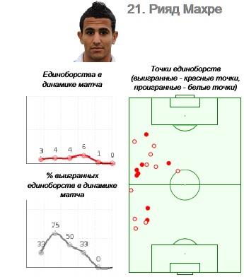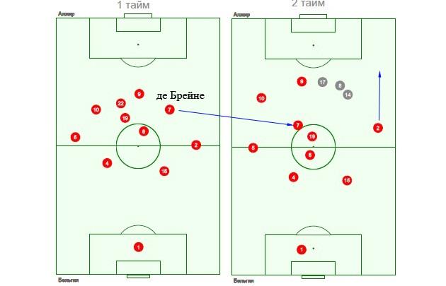 Возможно, это совпадение, но на левом фланге Алжира (правом для Бельгии) в начале второго тайма Рияд Марез, действующий на позиции левого полузащитника, начал резко проигрывать борьбу в своей зоне. С 45-й по 70-ю минуту он проиграл 5 единоборств из 7 в своей зоне. На 72-й минуте Халилходжич снял его с игры.