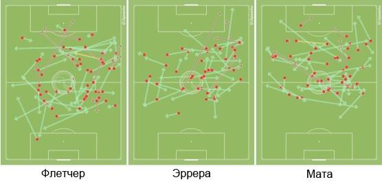 Ниже представлены схемы передач Флетчера, Эрреры и Маты в матче против Суонси.