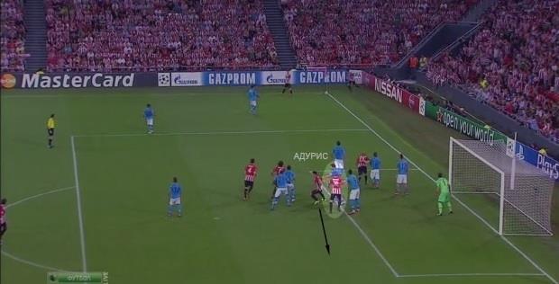 Один из самых показательных примеров – это гол Адуриса в ворота Наполи. Проигрывая по ходу второго матча квалификационного раунда Лиги чемпионов команде Рафаэля Бенитеса, Атлетику удалось отыграться, реализовав, по всей видимости, наигранное стандартное положение.