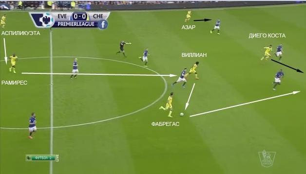 В прошлом выпуске мы разбирали контратаки Челси. Если посмотреть повтор эпизодов еще раз, то можно заметить, что Диего Коста начинал открываться за спину защитнику, выдвинувшегося вперед, еще до того, как игрок, отдающий передачу, принимал мяч.