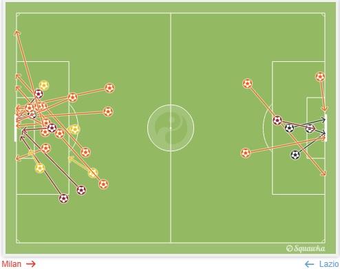 Например, по ударам из штрафной у Лацио перевес, а этот показатель имеет высокую степень информативности итогового результата на длительной дистанции, как и доставки мяча в штрафную. Римляне нанесли 12 ударов из штрафной. Для сравнения: Ювентус в прошлом сезоне наносил 8 подобных ударов, Рома – 8,5, Наполи – 7,8, а Фиорентина – 7,7. Но самое главное – все удары из штрафной игроки Лацио наносили после того, как счет уже стал 3:0 в пользу Милана (64-я минута). Что это было, расслабленность или усталость? В любом случае оправданий тут быть не может.