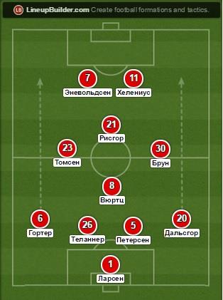 Как известно, с начала сезона Ребров начал использовать схему 4-3-3, которая во время обороны трансформируется в 4-1-4-1, где опорный полузащитник действует между линиями защиты и полузащиты. В свою очередь Ольборг применяет схему 4-4-2 в виде ромба. Ниже показана схема с игроками из первого матча.