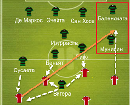 Оба тренера использовали одну и туже формацию. Выбор Вальверде и Луческу пал на 4-2-3-1. Баски избрали консервативный вариант игры с насыщением зон мяча при выходе из обороны, действиями тройками в комбинационной фазе и плотным прессингом в центре. Горняки были действовали более широко, применяли много забеганий за спины соперникам и старались вести игру на максимальной скорости.