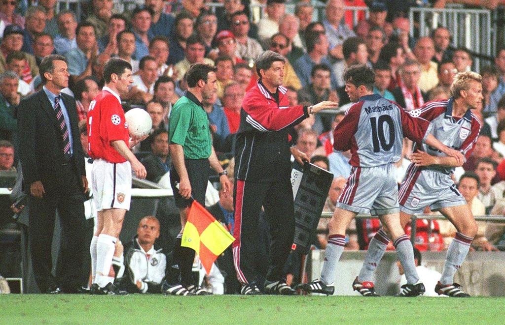 Манкунианцы тут же забрали мяч под свой контроль и понемногу прощупывали оборону соперника. Команду за собой вёл 24-летний Дэвид Бекхэм, который был вынужден играть не на фланге, а в центре поля. В атаке у Манчестер Юнайтед мало что получалось – оборона Баварии действовала практически безукоризненно. Большая заслуга в этом принадлежит 38-летнему Лотару Маттеусу, который в тот вечер выполнял роль свободного защитника или, другими словами, свипера. Немец "подчищал" за партнерами и персонально действовал как раз против Бекхэма. "В финале мы поменяли тактику. Тренеры Манчестер Юнайтед перевели Дэвида Бекхэма с фланга в центр полузащиты, поскольку Рой Кин и Пол Скоулз пропускали матч из-за дисквалификации. И Оттмар Хитцфельд попросил меня играть персонально против Бекхэма", – вспоминает тот день Маттеус.