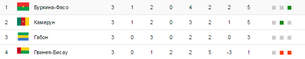 В итоге Камерун проходит в раунд плей-офф, заняв второе место, в то время как команда Габона могла бы отправляться домой, если бы этот турнир и так не проводила дома. Для габонцев роковой стала ничья со сборной Гвинеи-Бисау, которую остальные участники квартета обыграли.