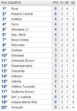 Ривер: Чичисола, Майдана (Ферреро, 30), Алайес, Хуан Мануэль Диас, Абекасис, Карлос Санчес, Мартин Агирре (Мауро Диас, 54), Доминго, Окампос, Кавенаги, Алехандро Домингес (Фунес-Мори, 83)