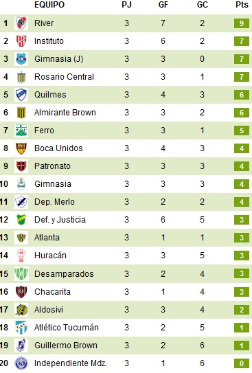 Турнирная таблица (ole.com.ar):
