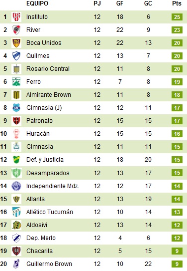 Бока Унидос незаметно так выбралась на третье место. Но в отчетном туре победить она не сумела, разойдясь миром с Химнасией из Ла-Платы, которая, несмотря на нынешнее 11 место, претендовать на повышение, скорей всего, будет.
