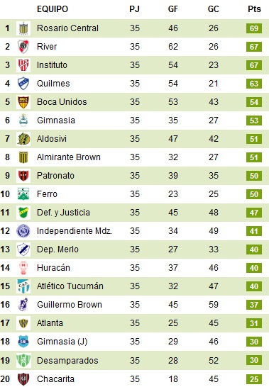 Турнирная таблица (ole.com.ar):