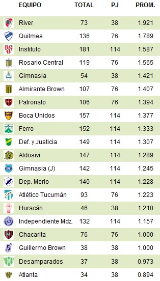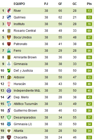 Итоговая турнирная таблица (ole.com.ar):