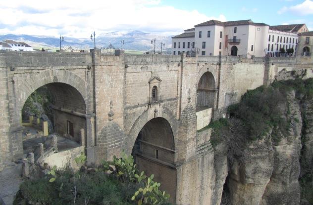 Но главной достопримечательностью Рондо является Новый Мост. На самом деле, он не такой уж и новый, поскольку был построен еще во второй половине 18 века. Сам город состоит из двух отвесных скал, между которыми бежит небольшая речка. Вот эти две скалы на высоте почти ста метров и соединяет каменный мост с красивыми арками. Вы только вдумайтесь, этот мост строили в течение 34 лет! Вид этого сооружения просто завораживает, а когда с него смотришь вниз, то по-настоящему захватывает дух.