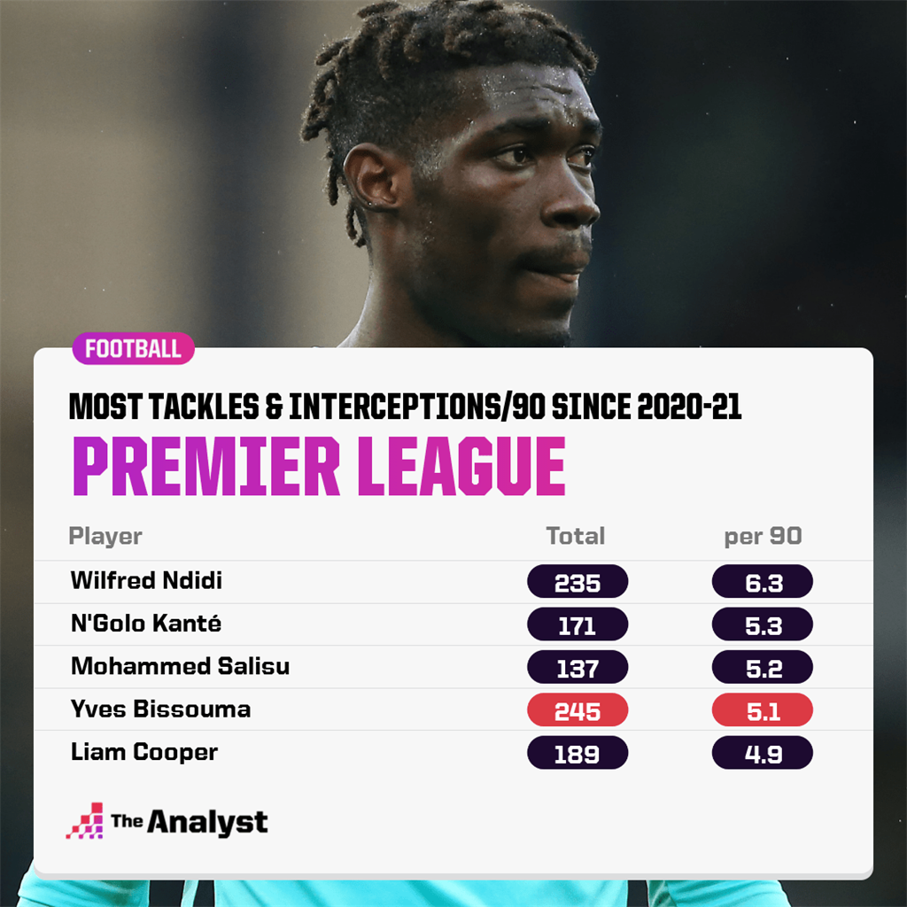 Биссума – универсальный полузащитник, обладающий хорошими навыками на мяче, но еще лучше умеющий возвращать мяч своей команде. С начала сезона 2020/21 ни один игрок в АПЛ не сделал больше отборов или перехватов, чем игрок сборной Мали (245). Однако этот стиль игры часто имеет свою цену – Ив получил 14 желтых карточек в АПЛ, начиная с сезона 2020/21 – только у трех игроков больше.