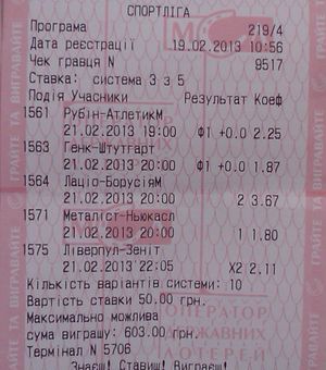 «Экспресс» - ставка на одновременный прогноз исходов нескольких независимых друг от друга событий. В таких случаях коэффициенты по исходам выбранным событий умножаются между собой, однако для выигрыша по ставке необходимо, чтобы ВСЕ прогнозы были правильно предсказаны. Если хотя бы один из них предсказан неверно, то ставка считается проигранной.
