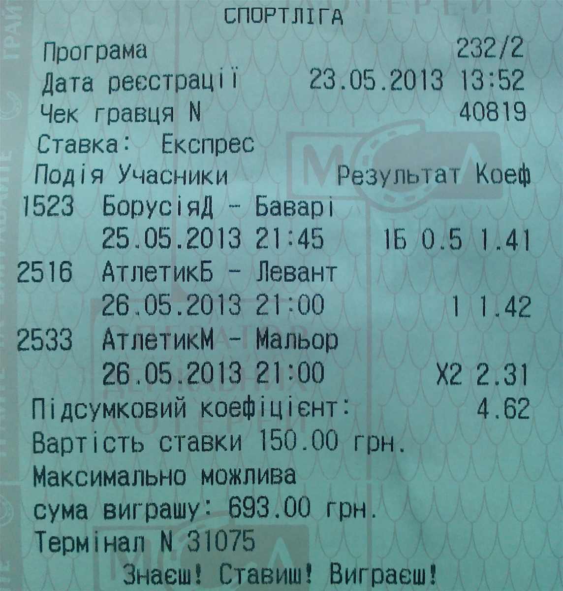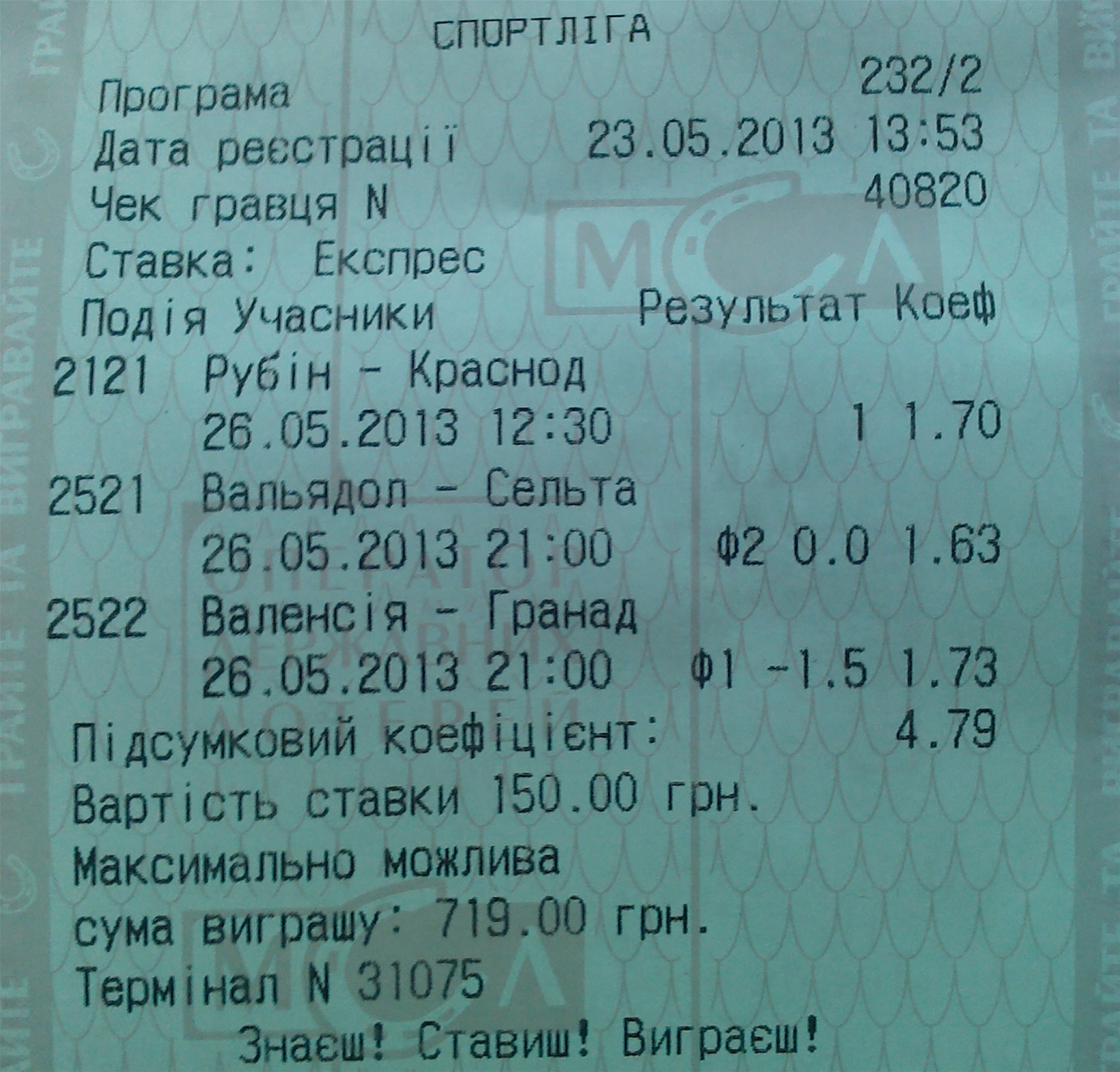 Баланс после 23-го тура: 1.760 грн (-1.240 грн)