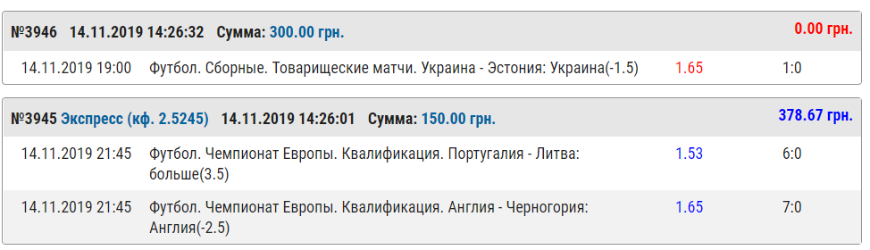 Выбрали два матча, в которых, по нашему мнению, должны были быть легкие победы хозяев и не прогадали. Португалия и Англия уничтожили Литву и Черногорию соответственно и нисколько не заставили нас нервничать. Прекрасный двойник с отличным коэффициентом.