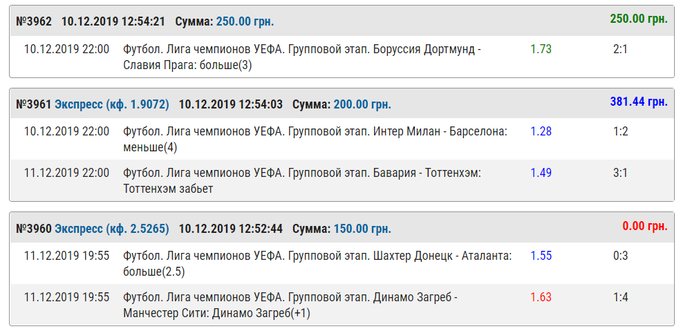 Второй тур кряду нам удается уйти в плюс, но, к сожалению, на этот раз прирост получился не таким весомым как в последний раз. Тем не менее, мы считаем, что этот тур можно занести нам в актив. Последние матчи группового этапа всегда получаются непредсказуемыми и не уйти в минус тут весьма непросто. Итак, смотрим, что получилось.