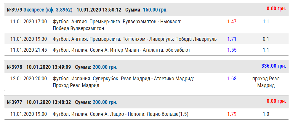 Несмотря на то, что в итоге не зашла всего одна ставка из трех, Вулверхэмптон, который нас подвел, играл первым. Это означало, что дальнейшие матчи никакого значения не имеют, хоть они и зашли.