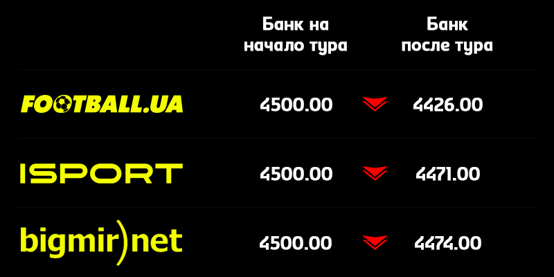 В первом туре нашего с Parimatch проекта мы показали 50-центный результат, но все-таки ушли в небольшой минус. Давайте посмотрим как там дела у Isport.ua и Bigmir)net.