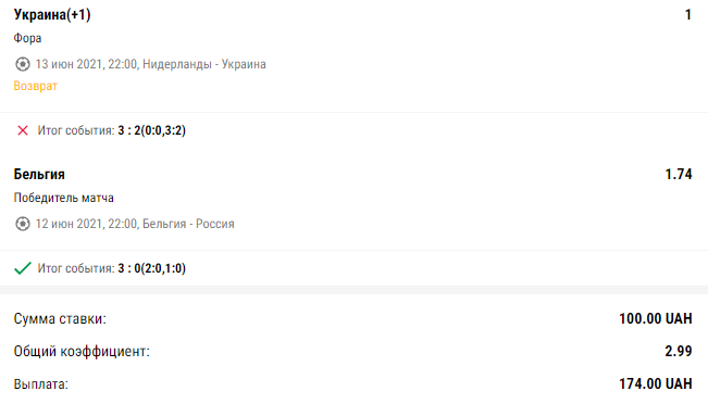 Первыми в нашем двойнике стартовали бельгийцы и россияне. Борьбы вполне ожидаемо не получилось — "красные дьяволы" забили быстрый гол и в спокойном темпе довели счет до разгромного. Неоправданно завышенный коэффициент на победу Бельгии, чем мы и воспользовались.