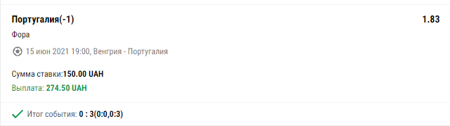 Что касается второго матча, то здесь мы верили в нашу сборную и полагали, что украинцам даже по силу взять как минимум один балл. По ходу матча казалось, что мы ошиблись, ведь хозяева выглядели лучше и по делу вели со счетом 2:0, однако "сине-желтые" смогли собраться и сделали прекрасный камбек. К сожалению для всех нас, удержать ничейный счет не удалось, что вылилось нам в возврат ставки. Несмотря на это, двойник остается плюсовым.