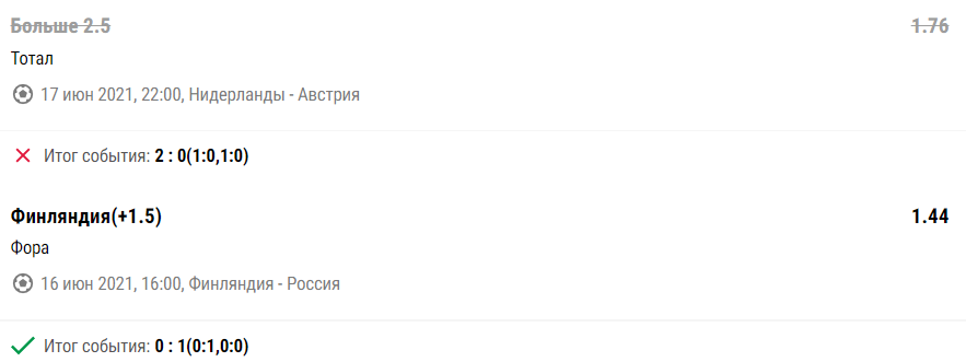 И вот самый обидный результат. У Нидерландов было куча моментов еще в первом тайме и наша ставка спокойно могла заходить даже в первые 45 минут, однако "пробить" тотал в конечном итоге командам не удалось. Вторая ставка в экспрессе зашла, но это уже не важно.