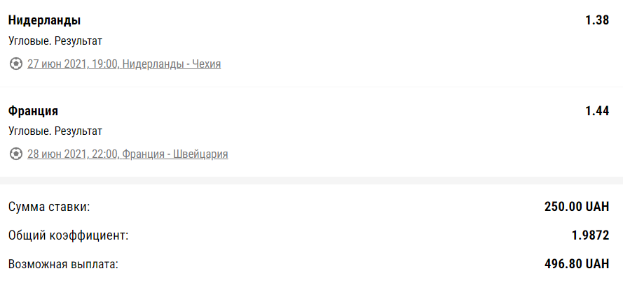 В обеих парах есть очевидный фаворит. Нидерланды и французы будут доминировать в своих матчах, что должно вылиться в превосходство по угловым ударам.