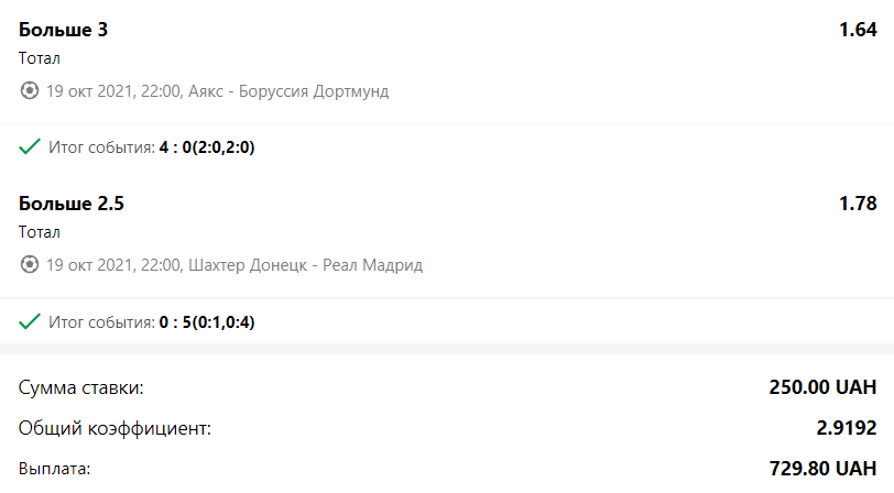 Поединки: Аякс — Боруссия Дортмунд и Шахтер — Реал; ставки Больше 3 и Больше 2,5