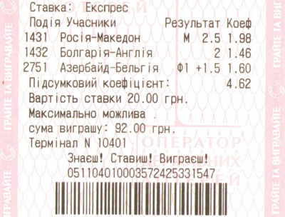 Вторым событием экспресса будет поединок наших соседей россиян в игре против Македонии. Последний матч сборной России против Сербии показал, что команда находится в кризисе. Игры практически нет, креатив близок к отметке "ноль". Лишь благодаря случайности подопечные Адвоката смогли забить. Добавьте сюда не самое лучшее психологическое состояние лидеров - Аршавина, Павлюченко, Жиркова, а также травму основного вратаря Акинфеева. Мы предполагаем, что в этом матче много голов забито не будет, поэтому берем тотал МЕНЬШЕ (2.5) за 1.98.