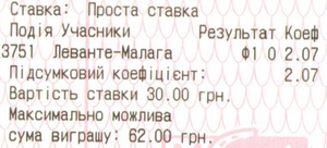И сыграем против Малаги. Анчоусы едут на выезд к непростому Леванте, претендующему на звание главного открытия старта нового сезона в Примере. Вновь букмекеры отдают предпочтение Малаге, которая пока ничем интересным не запомнилась. Леванте находится в прекрасной форм
