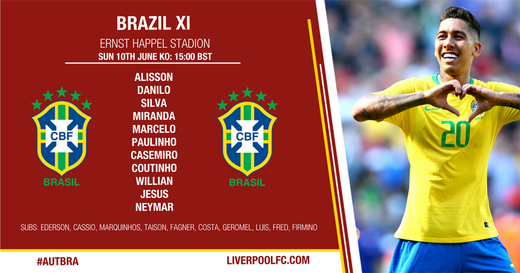 Бразилия: Алиссон — Данило, Силва, Миранда, Марсело — Паулиньо, Каземиро, Коутиньо — Виллиан, Жезус, Неймар.