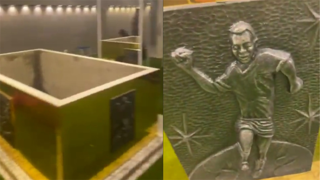 Робітники встановили на стадіоні Віла Бельміро посеред поля велику палатку, де стоїть золота труна із зображенням Пеле по боках.